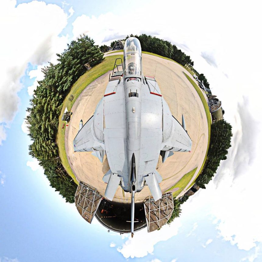This is a No II (AC) Sqn Tornado GR4 based at RAF Marham, through a fisheye lens for an interesting 360 angle ‘globe’ image.