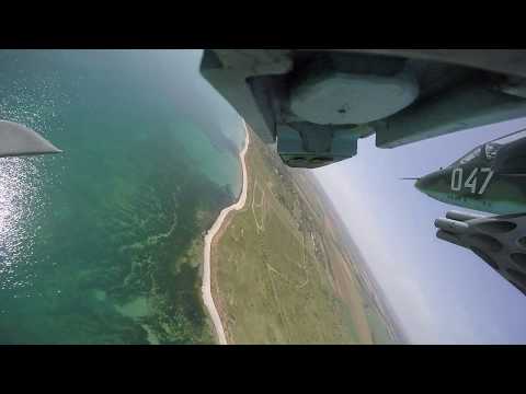 Among the material released by the Bulgarian Air Force, one video is really worth a look. Filmed with a camera attached to one of underwing pylons, it shows a sortie at the sea range by a Su-25UBK Frogfoot attack aircraft carrying UB-32A rocket pods for S-5 rockets.