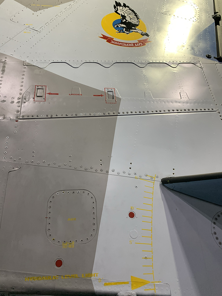 Our reader and friend Jason Camlic visited the NMUSAF and took the following images of the Su-27. All stenciling on the aircraft is in English. The Ukrainian badge, is the one of the Zaporozhye State Aircraft Repair Plant “MiGremont”.