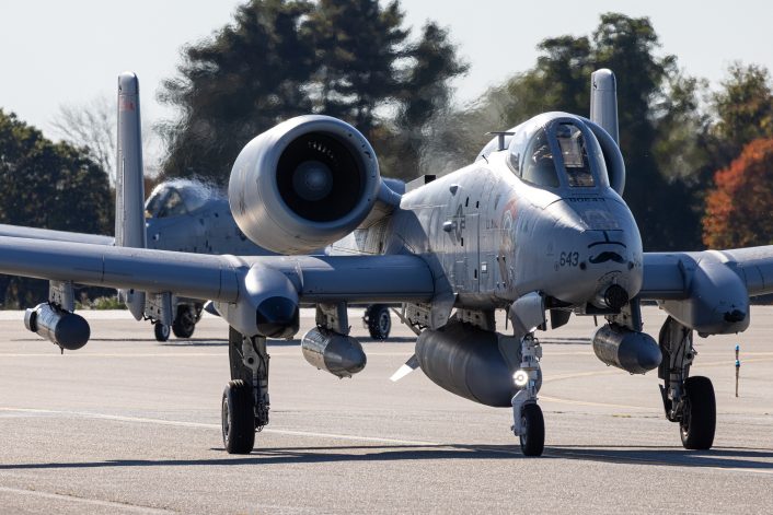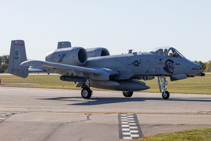 The 12 Warthogs were spotted arriving at Portsmouth International at Pease, New Hampshire, in two cells of six aircraft each on Oct. 7 and 10. The A-10 “Ares” was part of the second cell, and was captured while taxiing after landing by aviation photographer Alex H, who kindly shared the photos with us.