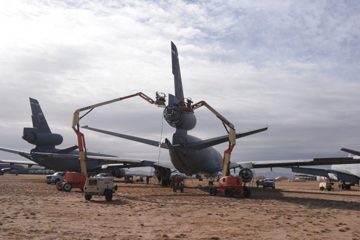The House bill further requires the flight-ready preservation of retired KC-10 Extenders, which the Air Force removed from service in Sept. 2024. Many of the KC-10 stored at the aircraft boneyard at Davis-Monthan Air Force Base have refueling booms and engines removed, raising questions about restoration feasibility.