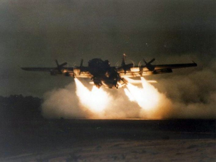 At first, the idea was to add JATO (Jet-Assisted Take-Off) bottles to the C-130 to increase the thrust during take-off, but engineers soon calculated a total of 58 large bottles would be needed, greatly increasing the weight of the aircraft to unacceptable levels.