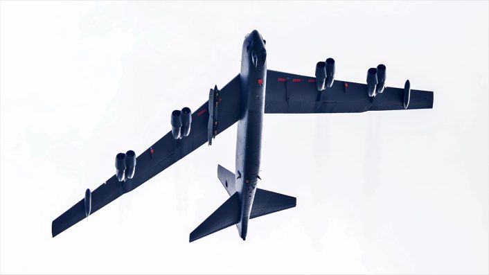 New images captured by aviation photographer Ryan Watamura show a U.S. Air Force B-52H flying a low-level route over California with one external pylon loaded with the new AGM-181 Long Range Stand Off (LRSO) missile.