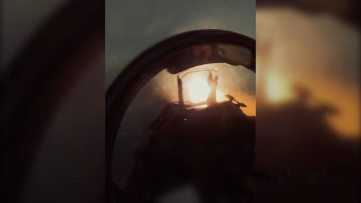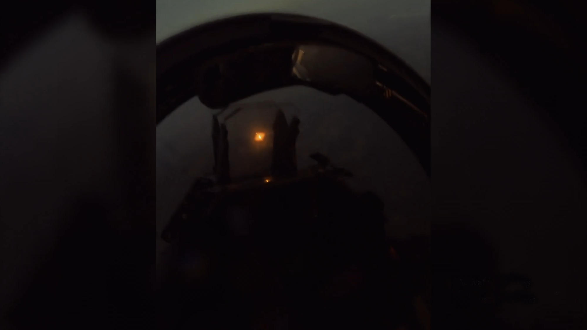 There are six missile shapes visible below the cockpit’s canopy rail on the port side of the jet. The video by the UKrAF also shows the aircraft carrying one R550 Magic Matra short-range air-to-air missile (SRAAM) on each of the wings, along with two external fuel tanks, as well as the engagement of a target in low-light hours.