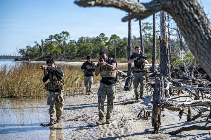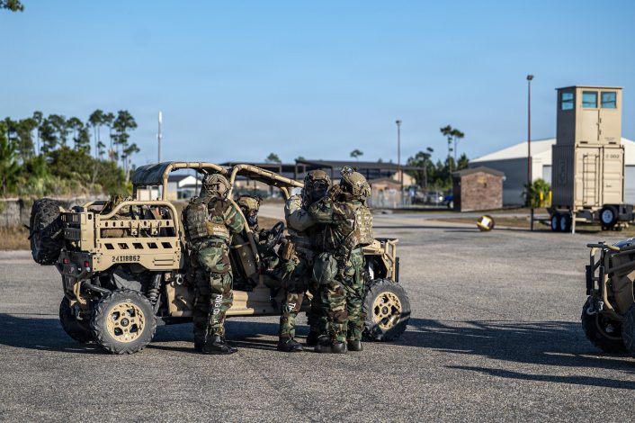 At Tyndall AFB, the 822nd Base Defense Squadron (BDS) acted as a dedicated OPFOR, and conducted a complex, multipronged attack on the A-Staff leadership and command and control node at the Combat Support Training Range. This was the culmination of multiple days of probing and testing perimeter defenses by using both drones and physical surveillance, in order to get a good idea of reaction times and security posture.
