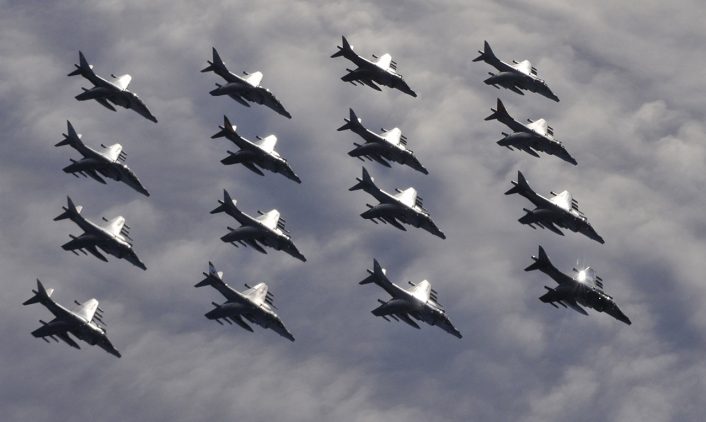 On Dec. 15, 2010, sixteen Harriers took off from RAF Cottesmore for a farewell formation flight marking the end to 41 years of British Harrier operations.