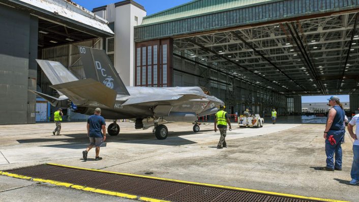 For the first time, the U.S. Navy’s Fleet Readiness Center Southeast (FRCSE) at Jacksonville, Florida, hosted three Royal Navy F-35B Lightning IIs which will undergo a “Production Asset Inspection Requirement Tier II (PAIR II) corrosion-mitigation inspection.” The comprehensive process will see the FRCSE crew assessing, repairing and removing any corrosive damage to the airframe’s outer skin, covered by vital Radar Absorbent Material (RAM) coating.