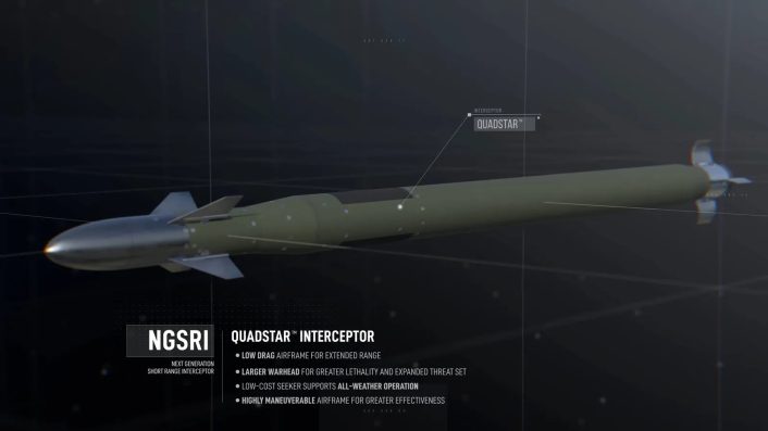 The design appears to be called Quadstar, as mentioned by Murphy in an interview to The War Zone last year. The QuadStar missile draws heavily on the company’s past work in miniature interceptors, including the Miniature Hit-to-Kill (MHTK) program, to create an aerodynamically efficient, highly maneuverable interceptor with enhanced seeker and guidance performance.