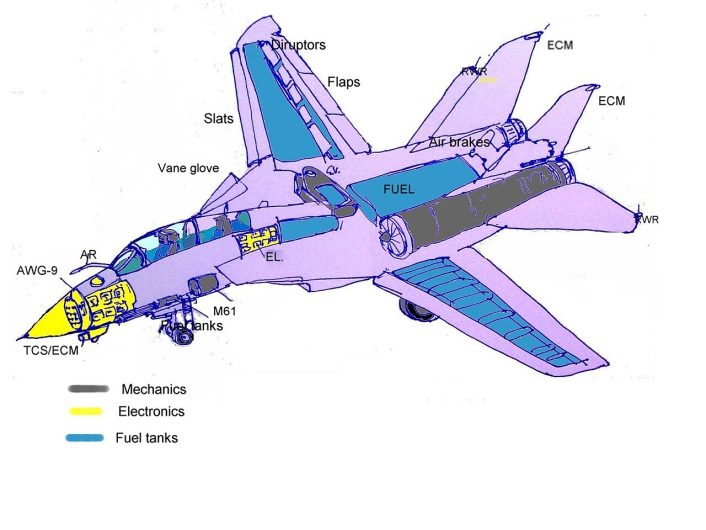 In the RIO’s (Radar Intercept Officer) rear cockpit, two CRT (Cathode Ray Tube) displays, known as the Detail Data Display (DDD) and the Tactical Information Display (TID), displayed information gathered by the AWG-9 system. The DDD displayed basic target information, while the TID presented processed information on a clutter-free screen bringing clarity to a tactical situation with alpha-numeric designations for contacts, as well as altitude, heading, friend or foe identity, and firing priorities for hostile contacts that had been processed and calculated by the computer. The RIO did have the ability to manually override the firing priority if need be.