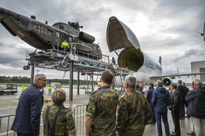 Even the massive CH-53 Sea Stallion operated by Germany was able to be loaded into a Beluga during a demonstration of a new payload loading system in September 2022.