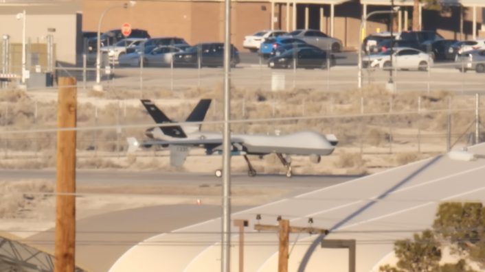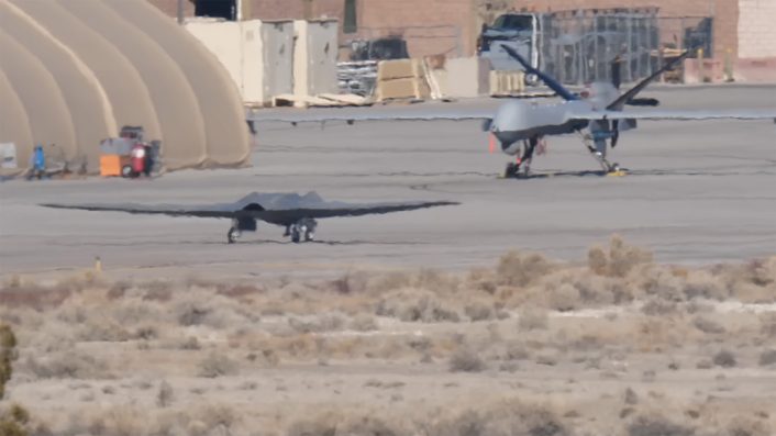 Previous imagery which we covered here at The Aviationist have shown the aircraft operating from a small number of highly controlled locations far from public scrutiny, such as the NTTR and the Air Force Plant 42 in Palmdale, California. The new video is therefore valuable because it offers rare insight into the Sentinel’s physical scale, daily operations and coexistence with more familiar platforms like the MQ-9A Reaper.