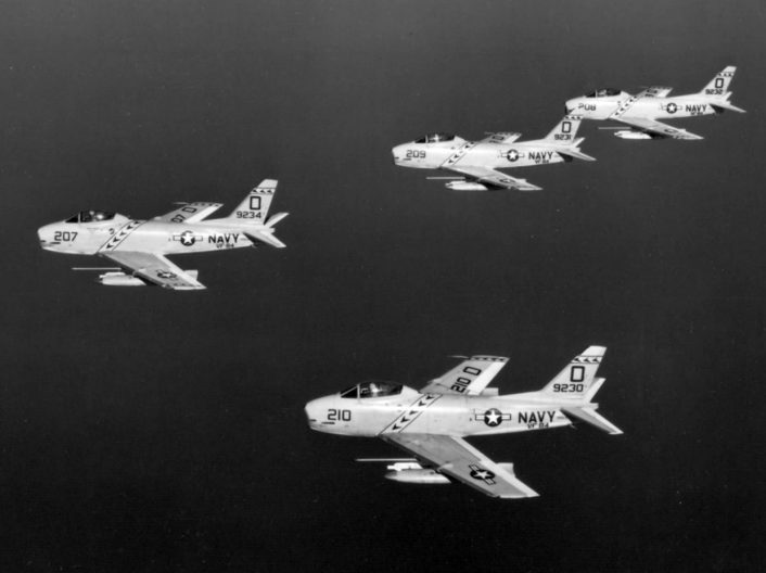 VF-17 was re-designated VF-5B on Nov. 15, 1946. In July 1948, the unit became VF-61. During this time period, the unit flew the F8F-2 Bearcat, the F9F-2 Panther, the F9F-8 Cougar, and the F3H-2M Demon. It was disestablished in 1959.