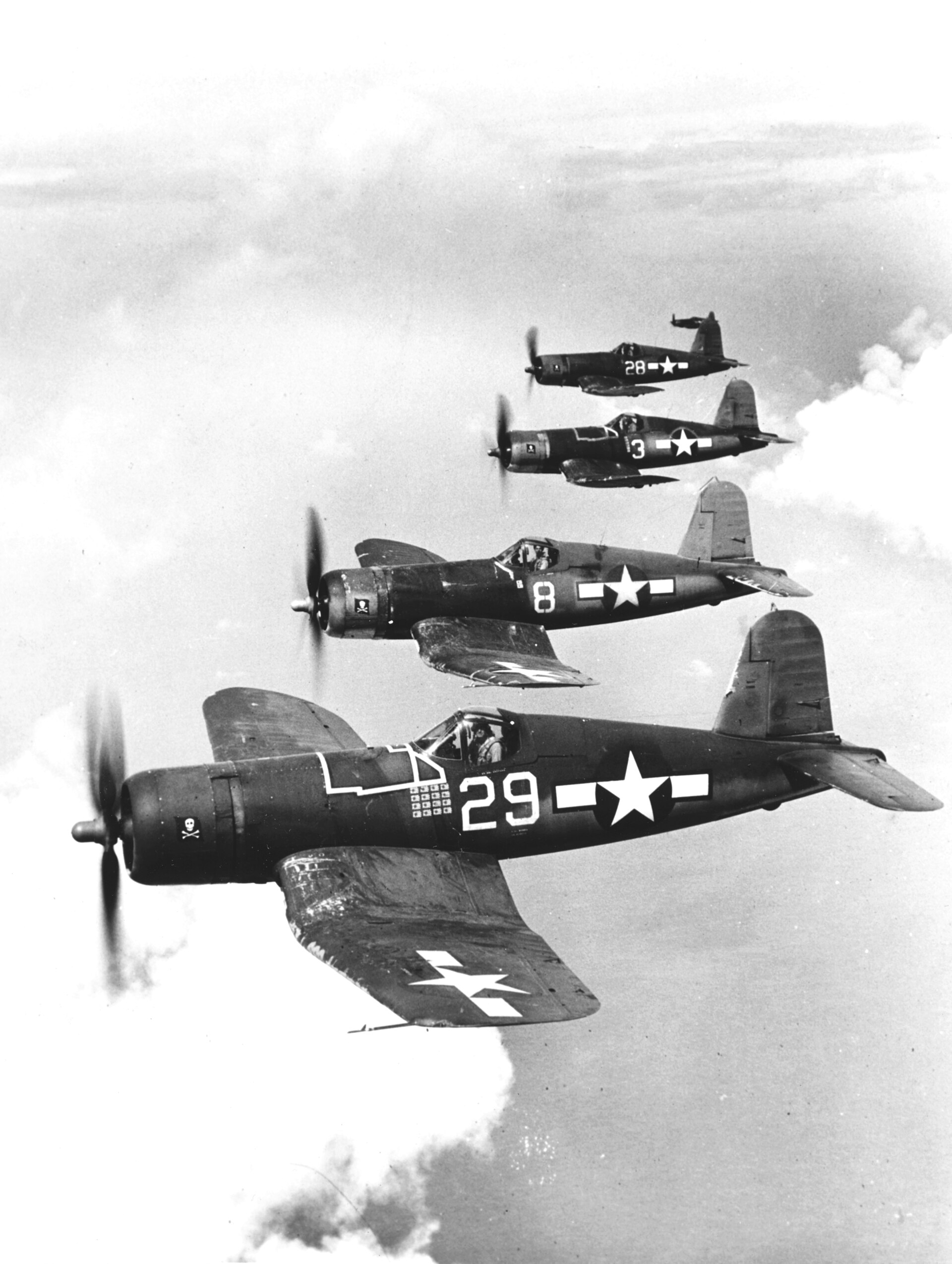 Blackburn decided his unit needed a unit name that was intimidating and showed an attitude. Since they were flying F4U-1 Corsairs (another name for pirate), the name Jolly Rogers was chosen for the unit and the familiar pirate flag consisting of a black background with white skull and crossbones was adopted as the unit insignia.
