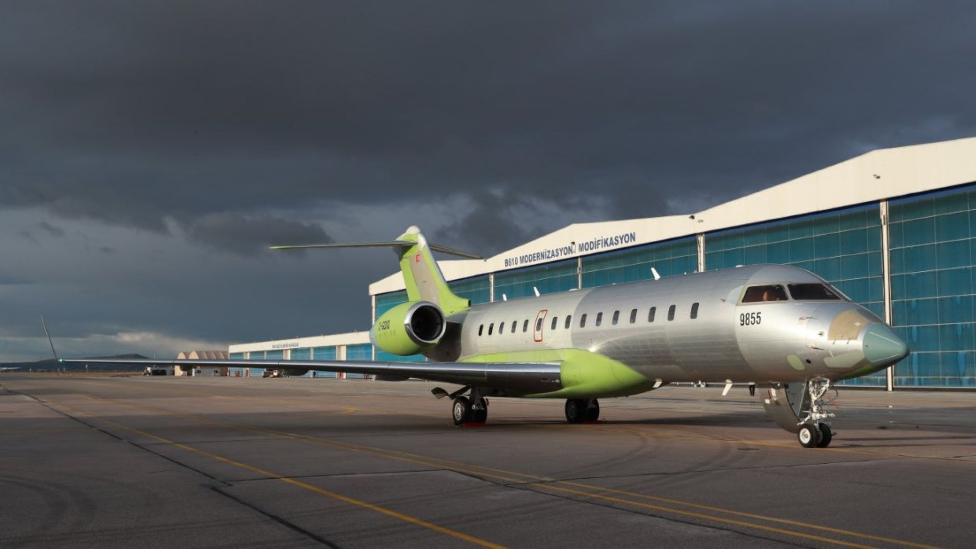 This was serial 9855, seen prior to conversion and installation of Aselsan’s EW/SIGINT payloads. The other airframe bore the serial 9854 and registration C-GBYG. Which one of the two took flight is not known, but the tail numbers can be expected to have been changed to local Turkish registrations post conversion.