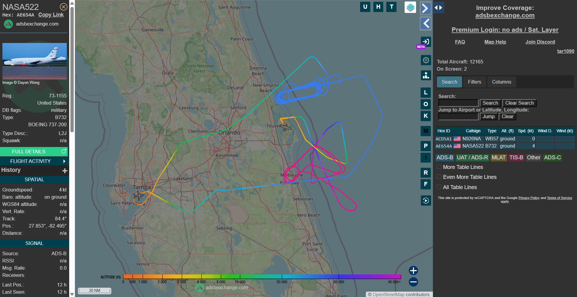 The first and more obvious is that the aircraft was tracked while flying on Mar. 31 with a NASA callsign, specifically NASA522. The identity of the aircraft was also confirmed by a photo sent to us by @Brevardjetphoto, which you can see as the cover of this article, captured as the aircraft was flying over Melbourne, Florida, on the way to its assigned area.