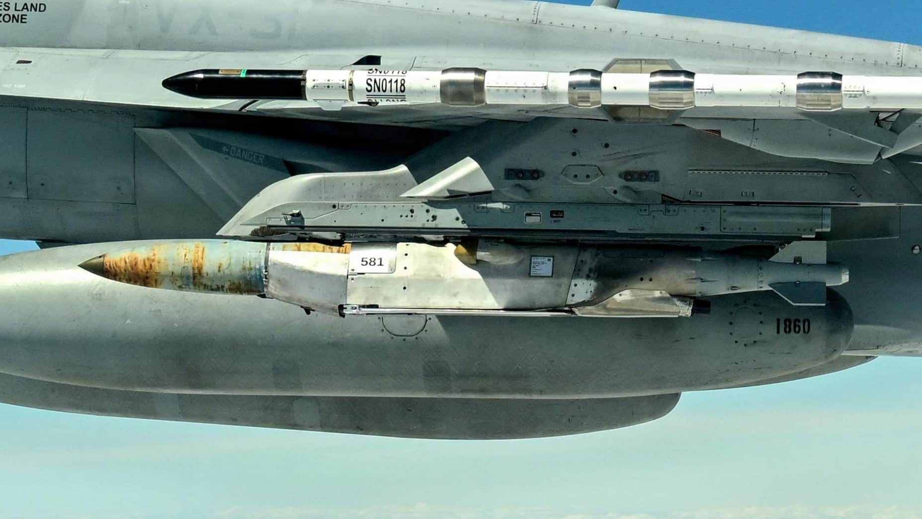 A Navy F/A-18 carries the new Joint Direct Attack Munition (JDAM) Long Range (LR) variant during a test event in early April off the coast of California. (Image credit: U.S. Navy photo/released)